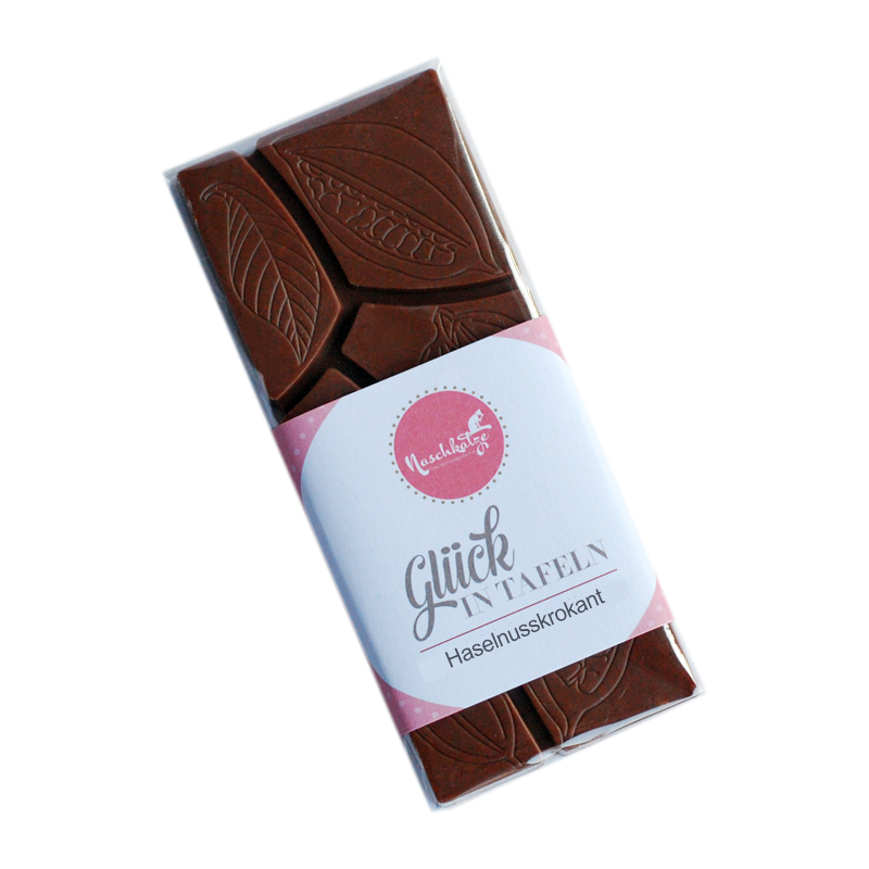 Wir wollten schon seit Ewigkeiten eine Vollmilchschokolade mit Haselnuss machen, aber es hat immer der letzte Schubser gefehlt. Mit unserem Osterhasen aus der Sonderkollektion, der aus Vollmilch mit Krokantstückchen bestand, sind wir endlich bei der perfekten Kreation gelandet. Also gibt es jetzt endlich die Glückstafel mit 40% Vollmilchschokolade verrührt mit selbstgemachten zart knackigen Piemonteser Haselnusskrokantstückchen.